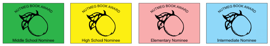 colors featuring the words "Nutmeg Book Award" and the level, with a