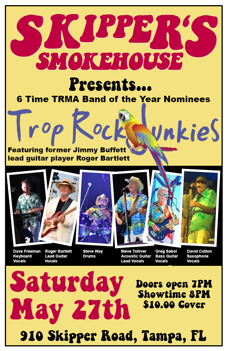 Saturday, 5/27 Trop Rock Junkies, Skipper's Smokehouse, 8pm.