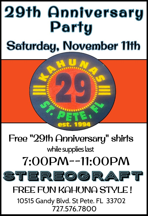 Looking for something to do Saturday evening - join Kahunas for their 29th Anniversary party.