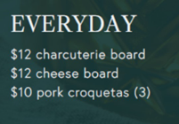 Here is the food/drink menu for 5th Wednesday. MUST have lanyard/name badge for specials and free parking.