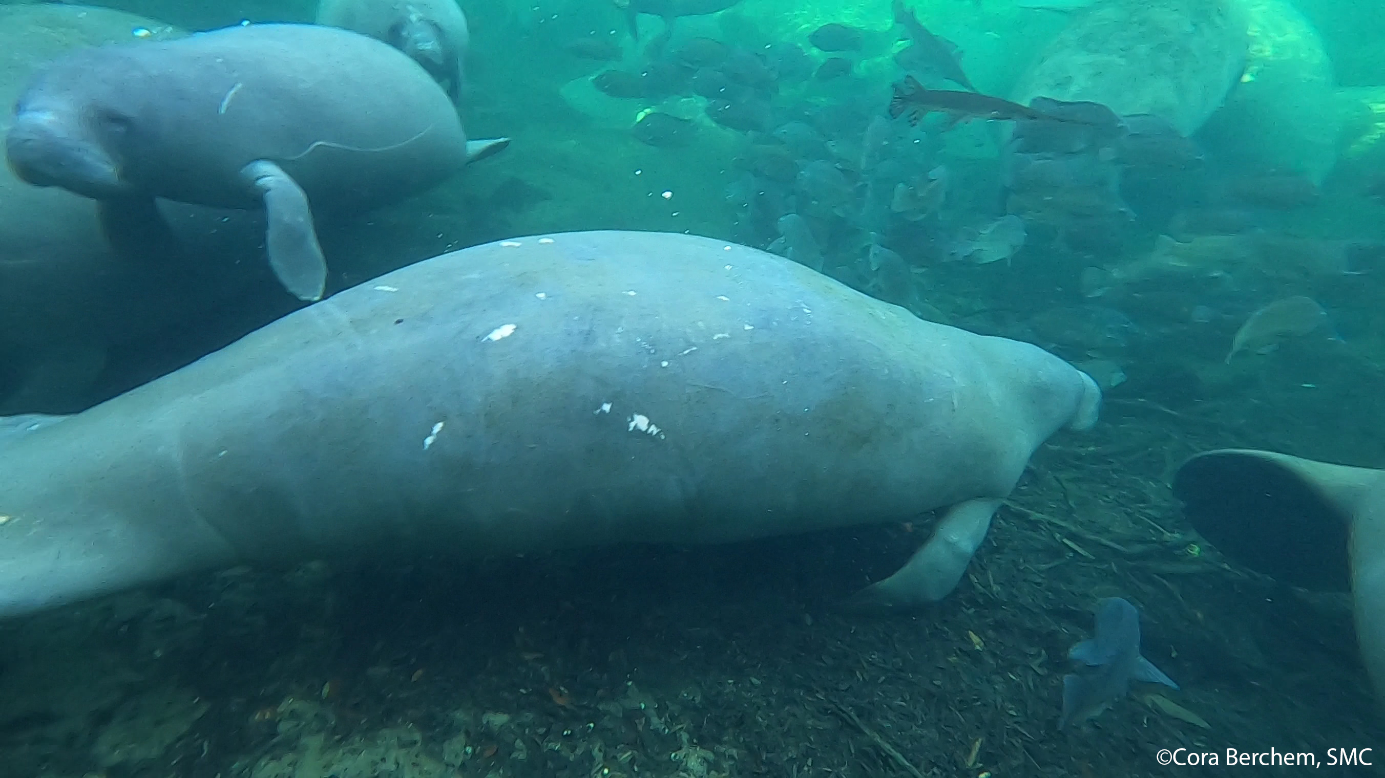 Sometimes we get sighting report from other bodies of water from the summer, but it was relatively quiet this year. We're slowly starting to see manatees return to the spring, but of our adoptees, only Annie has returned so far. Brutus can be a bit "late" as well; he sometimes stops at a spring to our north, and a different research team lets us know that he's turned up. I can update you once we hear where he is though.
